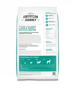 American Journey Beef & Sweet Potato Recipe Grain-Free Dry Dog Food, 24-lb bag—American Journey is full of nutritious ingredients that fuel your pet’s everyday adventures. The Beef & Sweet Potato Recipe Grain-Free Dry Dog Food formula features real, deboned beef with the protein and amino acids your dog needs for leaner muscles, and the exceptional flavor she instinctively craves. Delicious sweet potatoes and chickpeas are included to give your pup energy that lasts. With wholesome fruits and veggies like carrots, dried kelp and blueberries, your dog is getting beneficial fiber, phytonutrients and antioxidants. Omega fatty acids are plentiful, including DHA, an omega-3 that supports healthy development of the brain and eyes. These omegas come from several sources like salmon oil and flaxseed, and they help keep your fellow adventurer’s skin and coat healthy. This recipe is grain-free and has no corn, wheat or soy, which makes it a great choice for dogs that are prone to food sensitivities.