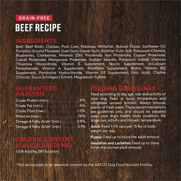 - American Journey Beef Recipe Grain-Free Canned Dog Food, 12.5-oz, case of 12—With beef, chicken, and pork liver for quality protein sources to help support lean muscles and provide the flavor profile dogs crave.