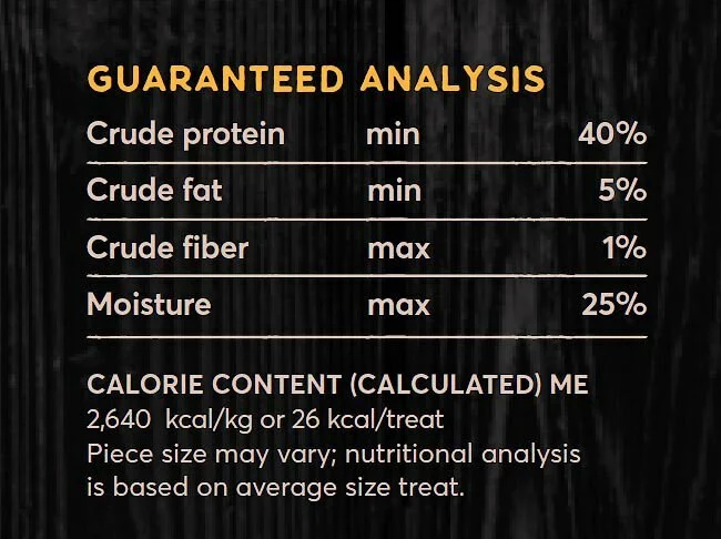 - High in protein with real chicken as the first ingredient. This delicious treat delivers 40% protein and features a single source of animal protein.