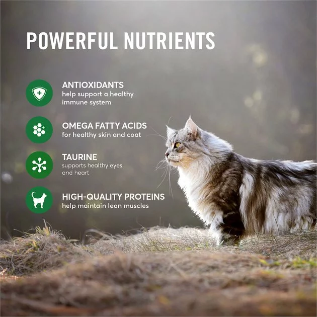 - This high-quality dry cat food is grain-free and designed to fuel your kitty’s everyday adventures with no corn, wheat or soy.