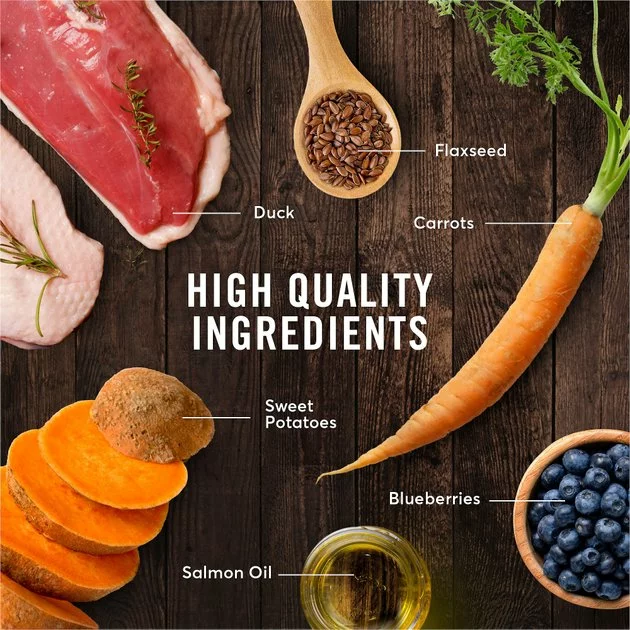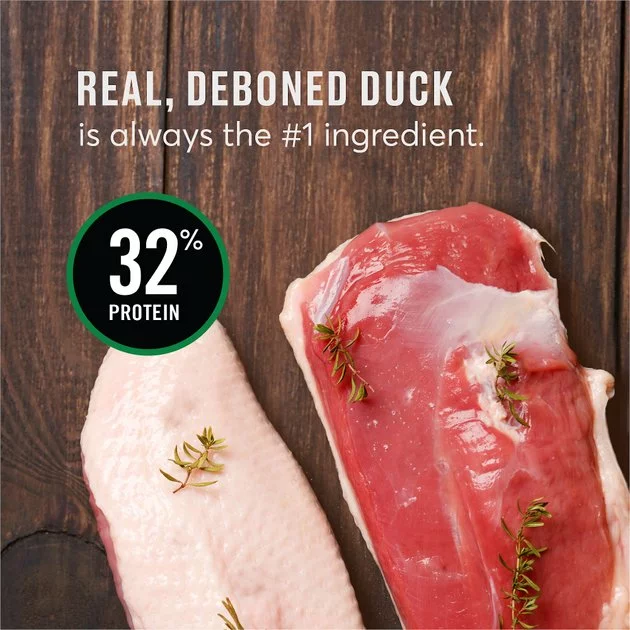 - High-protein dog food with real, deboned duck is not only delicious for your pup but full of amino acids that help maintain lean muscle mass.