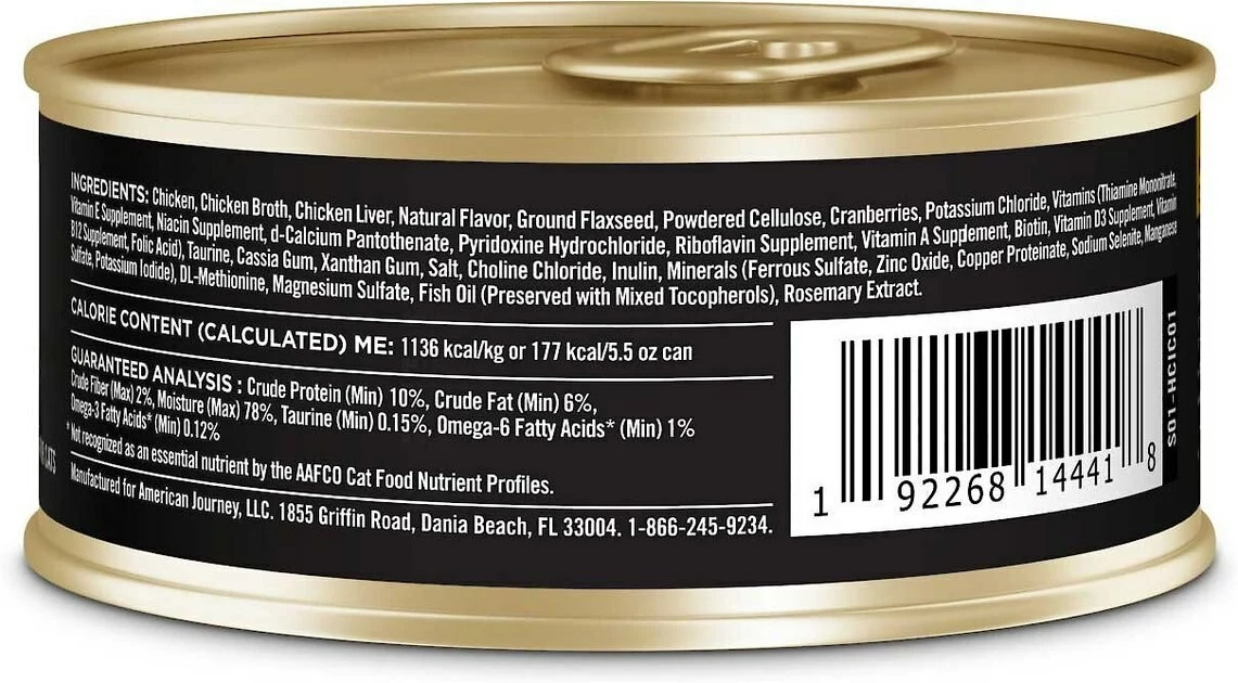 - American Journey Indoor Pate Chicken Recipe Grain-Free Canned Cat Food is specially formulated to support the nutritional needs of indoor adult cats.