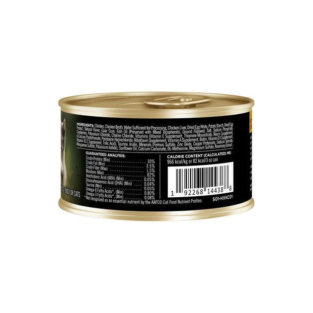 Chicken, Chicken Broth, Water Sufficient for Processing, Chicken Liver, Dried Egg White, Potato Starch, Dried Egg Product, Natural Flavor, Guar Gum, Fish Oil (Preserved with Mixed Tocopherols), Ground Flaxseed, Salt, Sodium Phosphate, Cranberries, Potassium Chloride, Choline Chloride, Vitamins (Vitamin E Supplement, Thiamine Mononitrate, Niacin Supplement, d-Calcium Pantothenate, Pyridoxine Hydrochloride, Riboflavin Supplement, Vitamin A Supplement, Biotin, Vitamin D3 Supplement, Vitamin B12 Supplement, Folic Acid), Taurine, Inulin, Minerals (Ferrous Sulfate, Zinc Oxide, Copper Proteinate, Sodium Selenite, Manganese Sulfate, Potassium Iodide), Sunflower Oil, Calcium Carbonate, DL-Methionine, Magnesium Sulfate, Rosemary Extract.