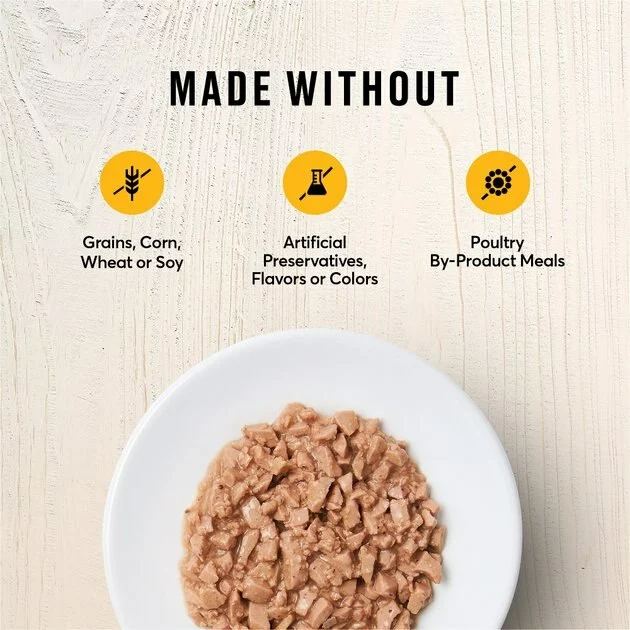 - Grain-free recipe made without corn, soy, wheat, poultry by-product meal or artificial colors, flavors or preservatives.
