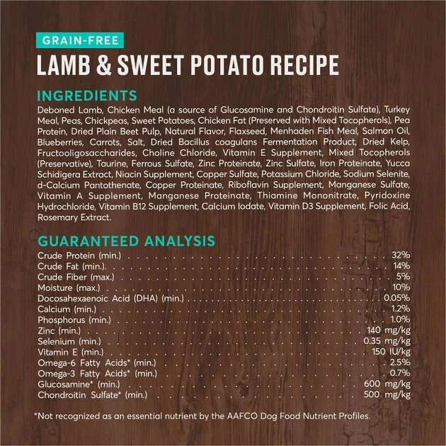 - American Journey Lamb & Sweet Potato Recipe Grain-Free Dry Dog Food, 24-lb bag—Nutritious fruits and vegetables like blueberries, carrots and dried kelp provide vitamins, minerals, antioxidants for immune system support, and phytonutrients.