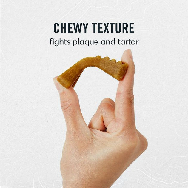 Freshen up your big doggy’s breath by rewarding your pup with original chicken-flavor American Journey Grain-Free Large Dental Dog Treats. These treats have a unique brush shape and a chewy texture that fights plaque and tartar buildup while they enjoy their snack. As your dog chews, these dental treats scrub all the hard-to-reach teeth, which means they’re awesome for between-brushing freshness. With a flavor dogs love and no grains, corn, wheat or soy, they’re easy to digest and perfect for everyday treating. They’re made to help keep your dog’s teeth in tip-top shape, and they’re just the right size for your friend at home. Plus, you can feel good about giving your dog these treats since they’re made with all-natural ingredients.