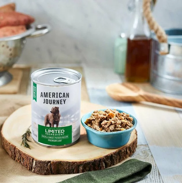 - American Journey Limited Ingredient Diet Duck & Sweet Potato Recipe Grain-Free Canned Dog Food is made especially for food-sensitive dogs with a limited number of high-quality ingredients.