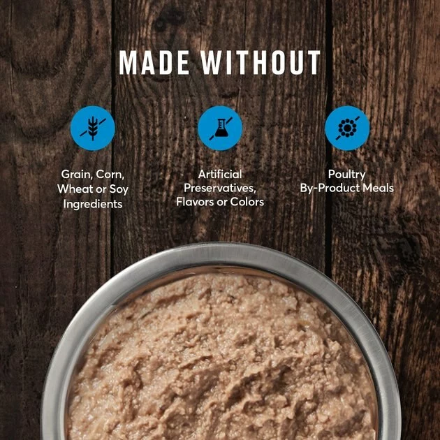 - Grain-free recipe made without corn, soy and wheat and made without poultry by-product meal or artificial colors, flavors or preservatives; packed in BPA non-intent cans for safety.
