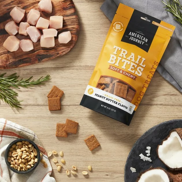Bring some portable, snackable protein to the trail with American Journey Soft & Chewy Trail Bites. These moist, soft bites pack the peanut butter flavor dogs love, and are crafted with real chicken as the first ingredient for a dose of protein in every bite. They’re free from artificial ingredients, wheat, corn, soy or by-products, so you can feel good about bringing them on all your adventures. Give them whole or break them up for smaller pups or for training. Plus, the resealable packaging makes them perfect for taking on the go.