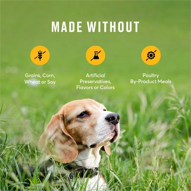 - Crafted using only nutrient-dense ingredients and never any grains, wheat, corn, soy, chicken or poultry by-product meals, or artificial preservatives, colors or flavors.