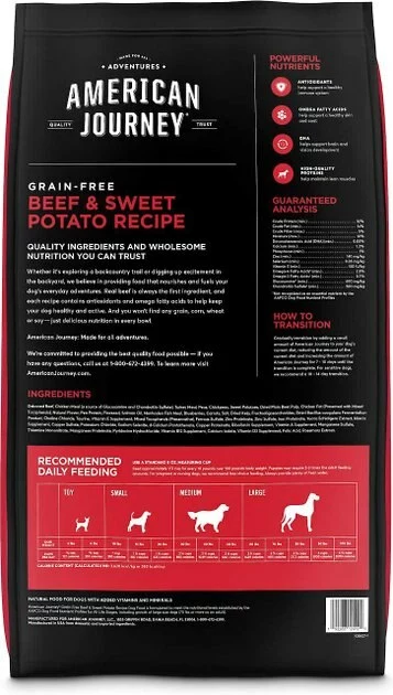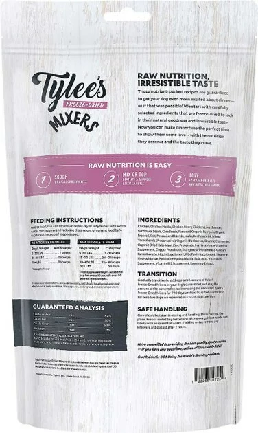 American Journey Beef & Sweet Potato Recipe Grain-Free Dry Food is high-protein dog food made with real, deboned beef, which is not only delicious for your pup but full of amino acids that help maintain lean muscle mass. Tylee’s Freeze-Dried Mixers for Dogs, Chicken & Salmon Recipe is made with organic pumpkin, organic broccoli, organic blueberries and organic kelp, plus superfoods including chia seeds and flaxseeds for a boost of minerals and antioxidants.