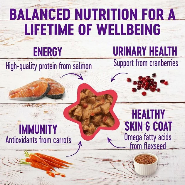 Help your cuddly companion stay happy and healthy! Each purchase comes with American Journey Minced Chicken & Salmon Recipe in Gravy Grain-Free Canned Cat Food & Wellness Complete Health Natural Minced Salmon Dinner Grain-Free Canned Cat Food. American Journey Minced Chicken & Salmon Recipe in Gravy Grain-Free Canned Cat Food starts with the real salmon that cats instinctively crave, covered in a delicious, savory gravy. This grain-free formula combines premium chicken and salmon for the rich flavor your kitty loves and the nourishing nutrients she needs to thrive. These high-quality animal proteins help support lean muscles, and they deliver essential amino acids. Taurine is also added for healthy eyes and a healthy heart. You’ll find everything your kitty needs to keep her going on her daily adventures in this hearty meal. That includes wholesome ingredients like cranberries and blueberries, natural omega-3 and 6 fatty acids for skin and coat health, and added vitamins and minerals. American Journey leaves out corn, wheat, soy, poultry by-product meal and artificial colors, flavors and preservatives so you can be sure your cat is getting the nutrition she deserves. Wellness Complete Health Natural Minced Salmon Dinner Grain-Free Canned Cat Food nourishes your kitty’s nose-to-tail well-being with protein-rich nutrition. With bits of salmon as the first ingredient, this nutrient-dense, grain-free recipe contains all the protein your pal needs to support her strong muscles and energy to fuel all her adventures. Every bite is packed with omegas from flaxseeds to maintain a healthy skin and coat, plus antioxidants, taurine, vitamins and minerals to support immunity and overall health. Serve up a bowl and feel good about providing your pal with everything she needs to thrive, and nothing you wouldn’t want her to eat, like fillers or anything artificial. Plus, the savory gravy will keep her coming back for more!