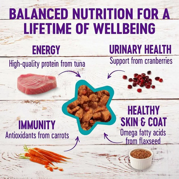 - Wellness Minced Tuna Dinner Grain-Free Canned Cat Food features chicken and tuna bits as the top ingredients for the protein needed to support lean muscles.
