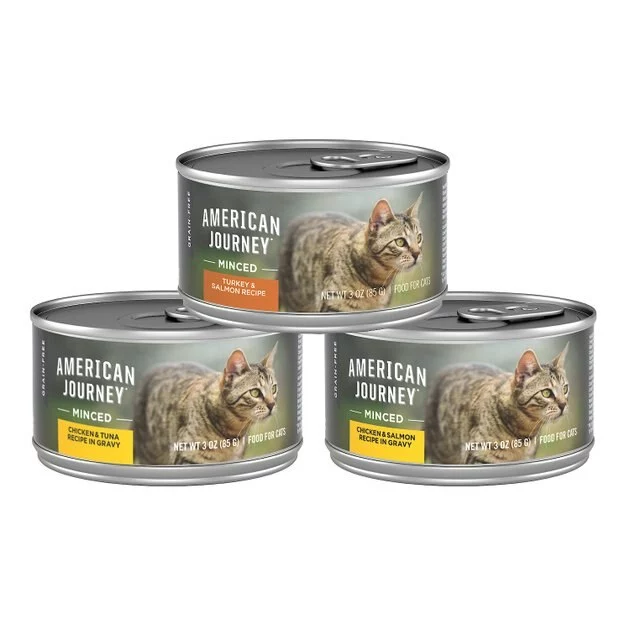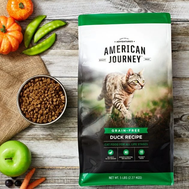 Send your kitty’s taste buds on a journey with this American Journey combo pack! American Journey Duck Recipe Grain-Free Dry Cat Food features real, deboned duck as the first ingredient, plus wholesome fruits and vegetables. This delicious recipe contains 40% protein to fuel your feline friend for all her adventures. To make meal time extra exciting, top this tasty kibble with American Journey Minced Poultry & Seafood in Gravy Variety Pack Grain-Free Wet Cat Food. This variety pack features premium poultry and seafood formulas for the rich flavor your kitty loves and the nourishing nutrients she needs to thrive. Every recipe starts with the real protein that cats instinctively crave and features the delicious, savory gravy they love. Best of all, both the kibble and the canned cat food are 100% free from grains, poultry by-product meal, corn, wheat, soy and artificial preservatives. They also feature taurine for healthy eyes and a healthy heart, and omega fatty acids for skin and coat health!